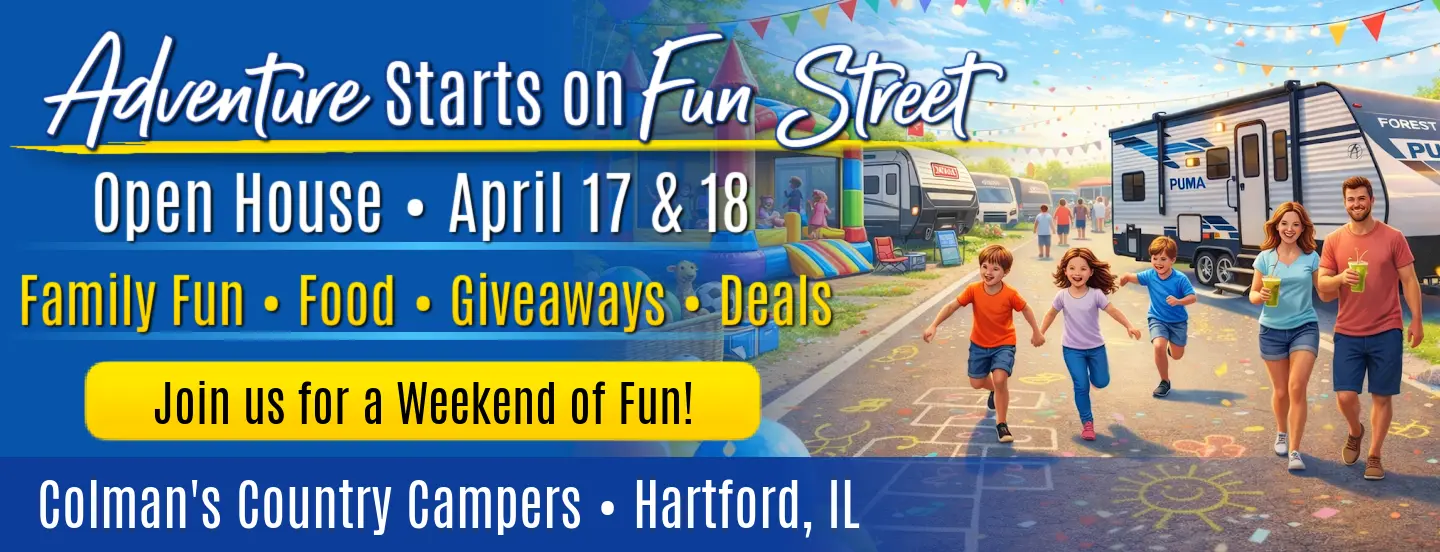 Since 1991, Colman’s Country Campers has helped families hit the road with quality RVs and friendly, down-to-earth service. What started with a few trailers on a grassy lot has grown into one of Illinois’ largest RV dealerships—guided by one simple belief: Adventure Starts on Fun Street.